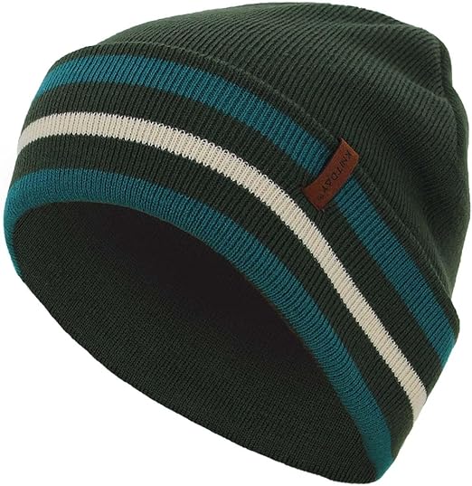 Men's Black Cuffed Running Golf Beanie Winter Hat for Men, Knitted Stripes Headband Pattern Cuff Beenie Skull Cap